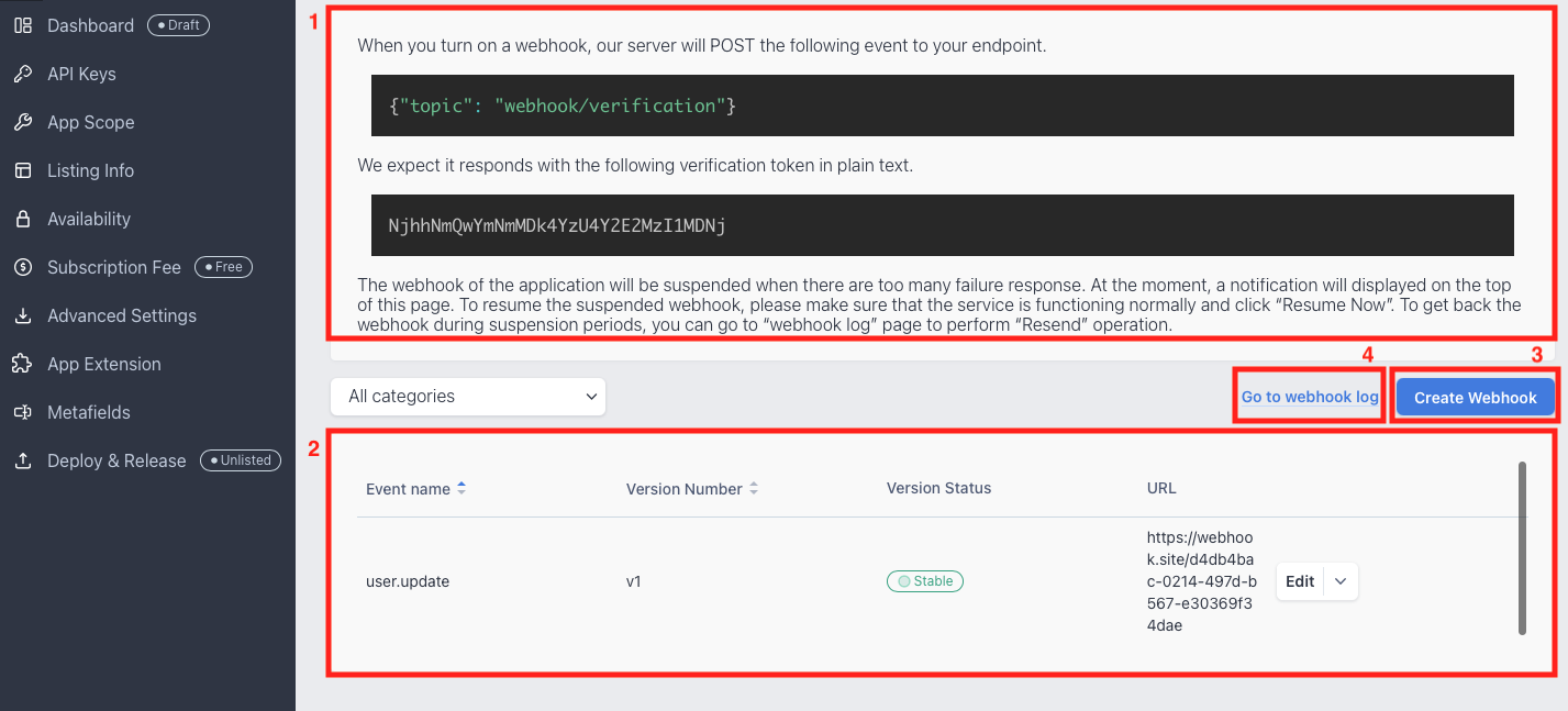- List of Subscribed Webhooks